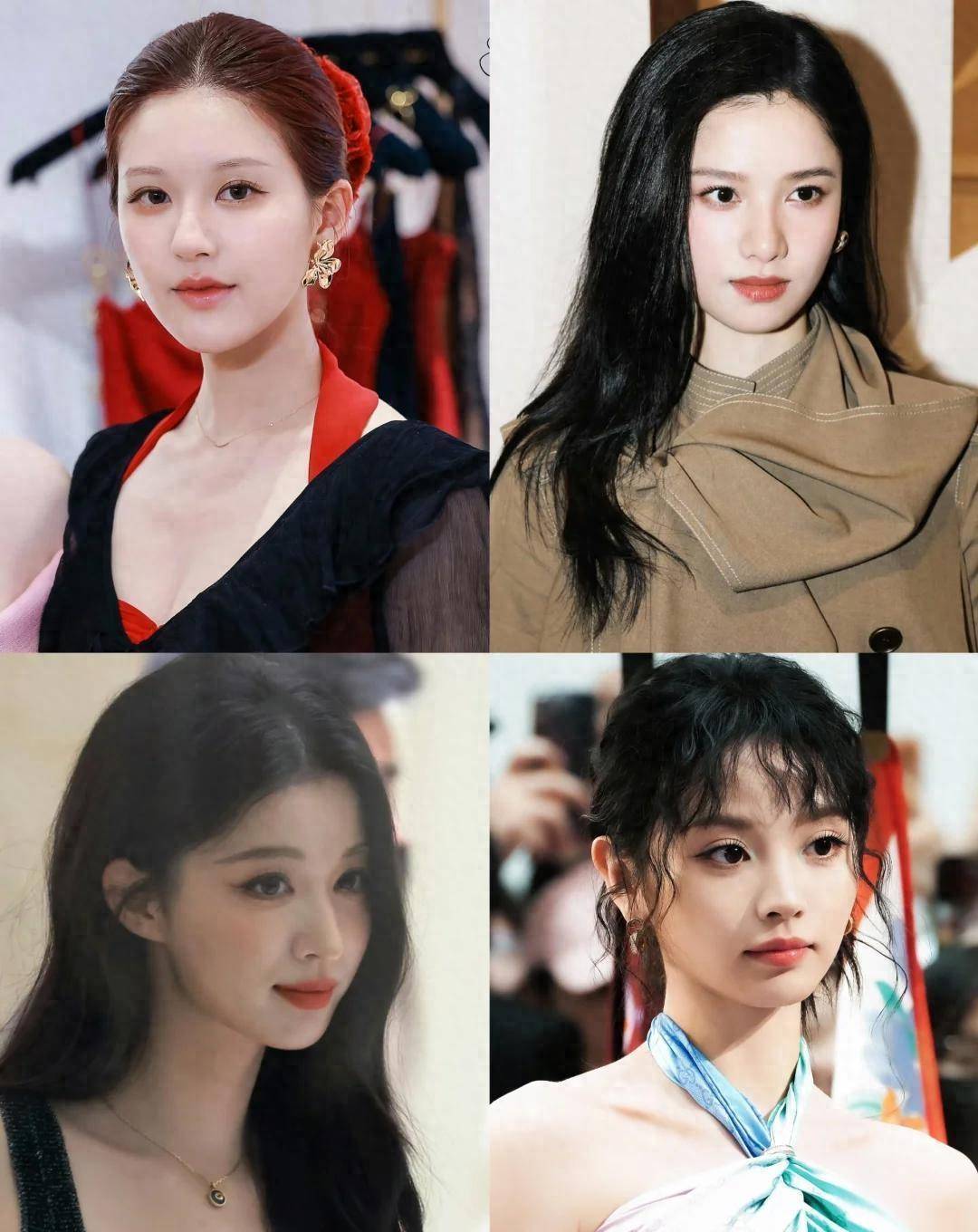 就拿白鹿来说吧,那天穿了件白色礼服,本来想走清纯路线,结果高清镜头怼脸上,油光把妆容都融花了,眼妆浓得像挂了层“发光眼屎”。还有宋祖儿,为了显瘦硬塞小码裙子,副乳勒得明明白白,下半张脸因为过度减肥显得格外崎岖。周也更惨,好好的电影脸偏要画网红眼妆,山根油得能反光,气质全无。网友忍不住吐槽:“这哪是红毯比美,分明是大型‘照妖现场’!”